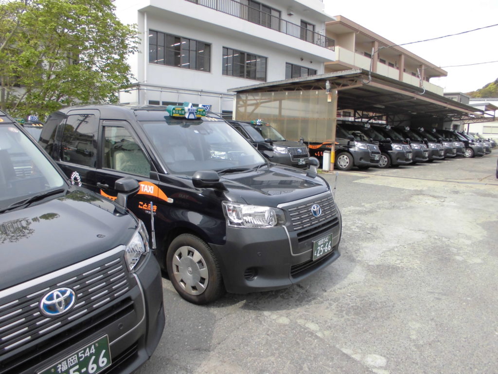 ことぶきタクシーのナンバーは全車「2566」になっています。電話番号と同じです。号車を見分ける方法は、無線番号の530~576の数字で見分けています。無線番号であれば、前と後ろはもちろん、左右両方のドア、天井の5か所に表示されています。